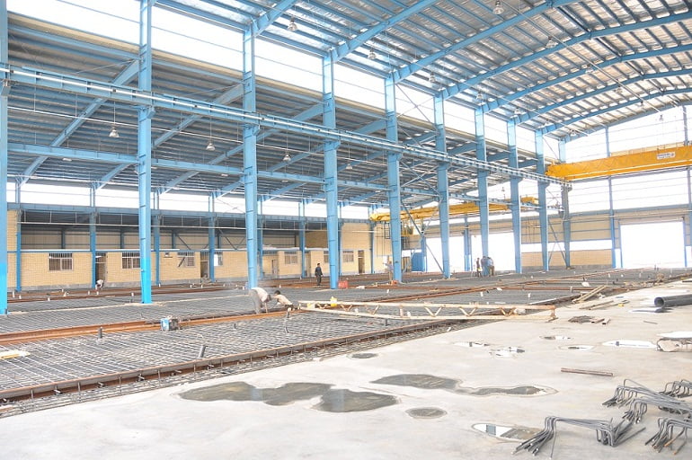 The first phase include 5 shelters in 5000 square meter area that equipped with overhead cranes with axillaries Such as air – electricity – water – gas and 1000 square meter area of official rooms and 5 km rails .